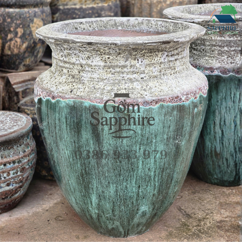 Mẫu chậu men sôi kết hợp men rêu cổ sở hữu vẻ đẹp vô cùng đặc biệt nhờ sự kết hợp tinh tế giữa hai kỹ thuật men độc đáo: