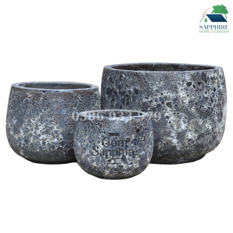 Bộ chậu gốm men Black Atlantis mang đến vẻ đẹp mộc mạc nhưng vẫn toát lên sự tinh tế và hiện đại. Với hiệu ứng bề mặt như dung nham tự nhiên, mỗi chiếc chậu là một tác phẩm độc đáo, thể hiện rõ nét tay nghề thủ công tinh xảo của nghệ nhân Việt Nam.