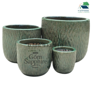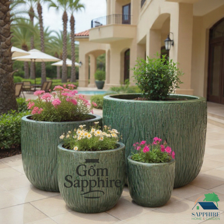 Mang sắc xanh rêu dịu mát cùng họa tiết vân nổi tự nhiên, bộ chậu gốm bottle green là lựa chọn lý tưởng để mang hơi thở thiên nhiên vào không gian sống của bạn. Thiết kế tinh tế với đường nét mềm mại và lớp men mờ sang trọng, sản phẩm dễ dàng hòa hợp với mọi phong cách trang trí — từ sân vườn, hiên nhà đến khu vực hồ bơi hay resort nghỉ dưỡng.