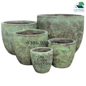 Mang vẻ đẹp của thời gian và thiên nhiên, Bộ Chậu Gốm Men Atlantis gây ấn tượng với hiệu ứng men rêu xanh tự nhiên, mô phỏng quá trình oxy hóa của đồng cổ – một trong những dòng men được yêu thích nhất trong bộ sưu tập Atlantis.