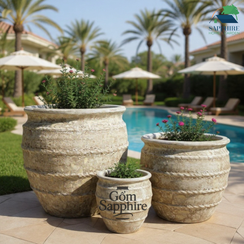 • 🏺 Chất liệu: Gốm sứ nung cao cấp, bền chắc, chịu thời tiết tốt.