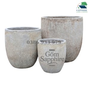 Bộ chậu White Atlantis sở hữu bề mặt đặc trưng với hiệu ứng men sôi độc đáo, được tạo nên từ quy trình nung nhiệt độ cao kết hợp men Atlantis đặc biệt. Tông màu trắng ngà – xám loang nhẹ mang đến vẻ đẹp tự nhiên, mộc mạc nhưng vẫn sang trọng, phù hợp với nhiều phong cách trang trí sân vườn và nội thất hiện đại.