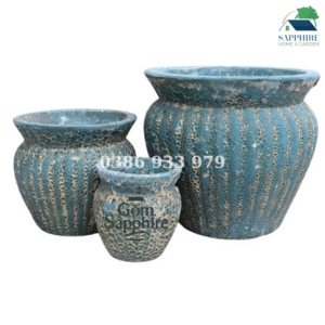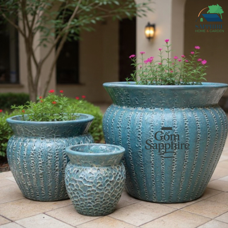 Mang hơi thở của biển và sắc thái tươi mát của thiên nhiên, Bộ Chậu Gốm Men Nham Thạch Xanh Ngọc là lựa chọn hoàn hảo cho không gian sống hiện đại nhưng vẫn gần gũi, hài hòa với môi trường. Lớp men hiệu ứng nham thạch đặc trưng tạo nên bề mặt sần độc đáo, kết hợp gam xanh ngọc pha ánh be nhạt, gợi cảm giác thanh thoát và sang trọng.