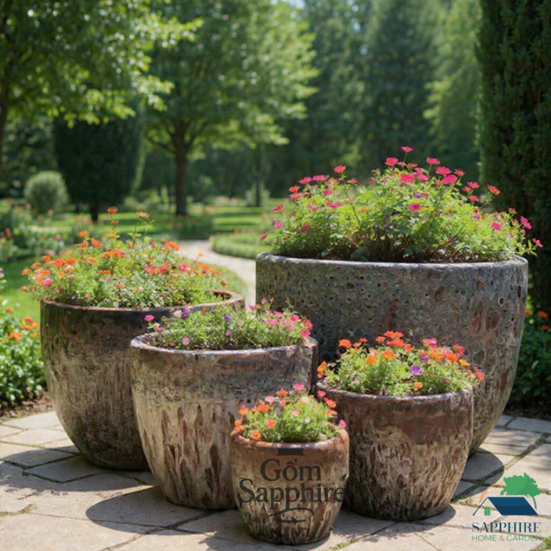 • Chất liệu gốm cao cấp, bền màu, chống thấm, chịu nhiệt và thời tiết ngoài trời.