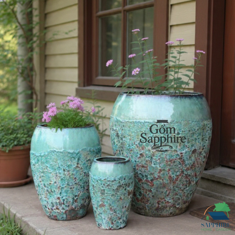 • Tông xanh ngọc trang nhã, dễ phối hợp với nhiều loại cây và phong cách trang trí.